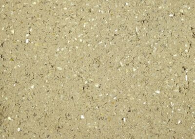 Materia Viva Conchiglia is a mixture of crushed and selected shells in different granulometries mixed into the Materia Viva base, a mineral powder coating for interiors based on hydraulic lime, aerial lime, and selected aggregates.