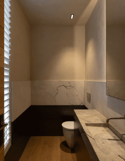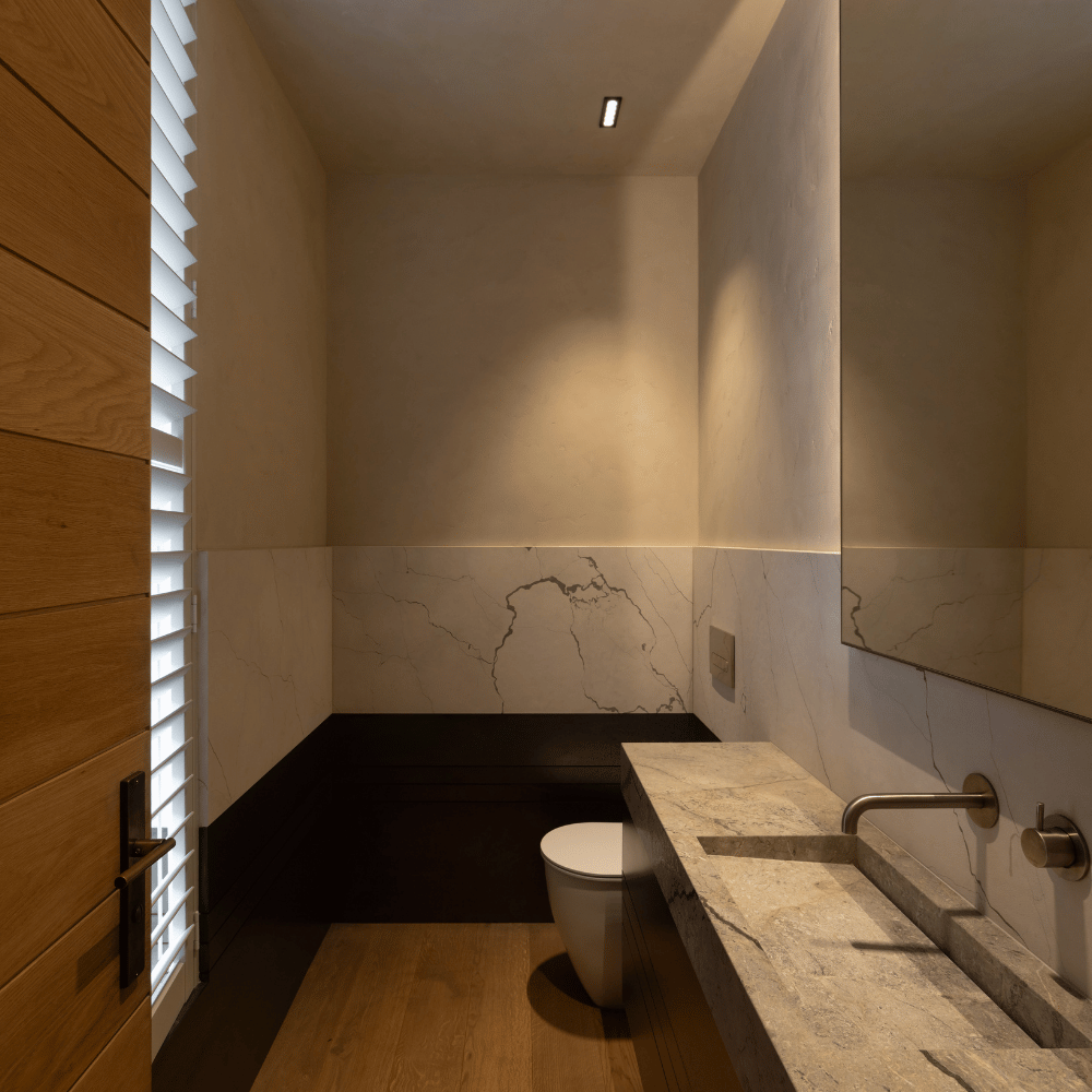 Each space has been considered for the way light interacts with form – from morning softness to the sharp contrast of afternoon sun. The result is a seamless dialogue between architecture and finish, where every surface feels alive with subtle movement.